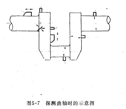 曲軸的探測 曲軸的探測以直探頭為主,一般在主軸頸、曲柄銷及扇板上進(jìn)行。必要時,可用斜探頭做輔助探測,如下圖1,用斜探頭探測近軸頸過度區(qū)圓角處或軸鍵槽處的裂紋時,應(yīng)注意選擇聲束的入射方向,如圖2。探測時還應(yīng)注意油孔反射波與缺陷波的區(qū)別。
