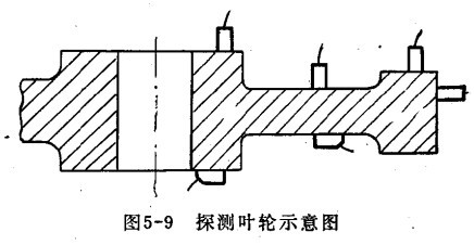 (二)盤類鍛件的探傷 盤類鍛件(如汽輪機(jī)葉輪)是在高溫、高壓、高速下工作的,不允許存在白點(diǎn)、裂紋等缺陷。需探測的葉輪表面光潔度不應(yīng)低于?6,超聲波探傷儀探測部位應(yīng)以缺陷集中且承受應(yīng)力最大的輪殼為主。葉輪中的缺陷多垂直于鍛壓方向,故應(yīng)以鍛壓方向垂直的端面作為主要探測面。探測時,以直探頭為主。直探頭探測能有效的發(fā)現(xiàn)平行于探測面的缺陷。同時,可用斜探頭(或直探頭在葉輪外圓周上)探測與葉輪端面垂直或傾斜的缺陷,如下圖所示。