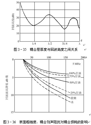 由圖可知,耦合劑聲阻抗越大,越接近于晶片(或保護膜)和工件的聲阻抗,探傷儀探測工件表面粗糙度越小即光潔度越高,則耦合損耗越小,透聲性能越好。此外,耦合損耗還與探測頻率和保護膜性質(zhì)有關。