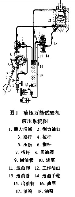 液壓萬能試驗機主要用于金屬材料的拉伸、壓縮、彎曲及剪切等實驗,也可做木材、水泥及混凝土等的壓縮及彎曲試驗,廣泛地應用于科研機關(guān)、基本建設(shè)單位、冶金和機械制造廠以及大專院校的實驗室,液壓萬能試驗機在使用過程中會發(fā)生一些故障,故障較難查找,若不及時維修,又會影響其正常使用,我們在試用和維修過程中積累了一些經(jīng)驗,敘述如下,為該種類試驗機的修理提供方便。