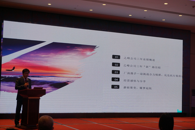 9點(diǎn)鐘大會(huì)正式開(kāi)始,馬海龍總裁發(fā)表“合力謀發(fā)展,共贏創(chuàng)未來(lái)”的主題演講,講述著時(shí)代之峰公司不畏艱辛,勇登新高峰的篇章;介紹著三年的“新”路歷程,堅(jiān)定不移的走不斷創(chuàng)新之路;堅(jiān)持廠商攜手——迎挑戰(zhàn)合力勤耕,化危機(jī)行穩(wěn)致遠(yuǎn)的故事;述說(shuō)著經(jīng)營(yíng)感悟與分享,與經(jīng)銷商朋友分析經(jīng)營(yíng)的感悟與經(jīng)驗(yàn);展望著磨礪聚焦,筑夢(mèng)起航五個(gè)篇章。演講過(guò)程中大家紛紛額首,掌聲不斷。